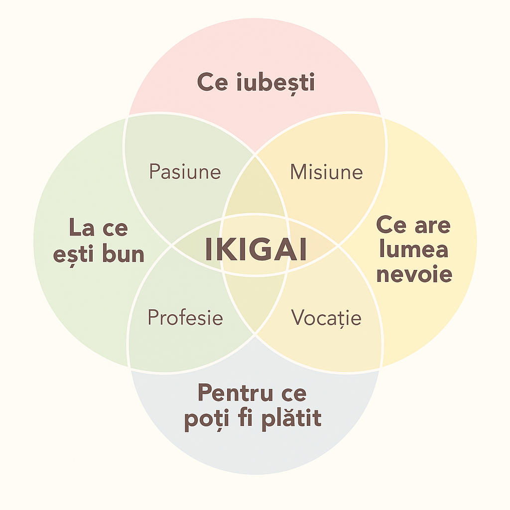 Japonezii numesc ikigai acel punct în care pasiunea, vocația, profesia și contribuția ta se întâlnesc. Nu e doar despre carieră, ci despre motivul pentru care te trezești dimineața.